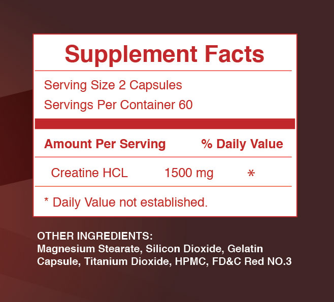Creatine helps muscle cells produce more energy. Supplementing with Creatine HCL provides additional ATP energy, which improves high-intensity exercise performance.